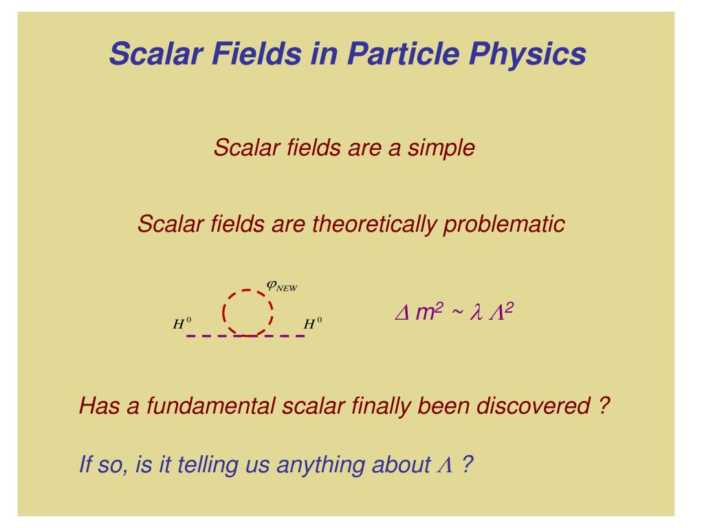 Scalar fields are theoretically problematic m2 ~ 2 Scalar Fields in Particle Physics Scalar fields are a simple Has a fundamental scalar finally been discovered ? If so, is it telling us anything about ?