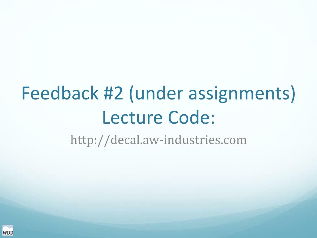 Feedback #2 (under assignments)Lecture Code: http://decal.aw-industries.com