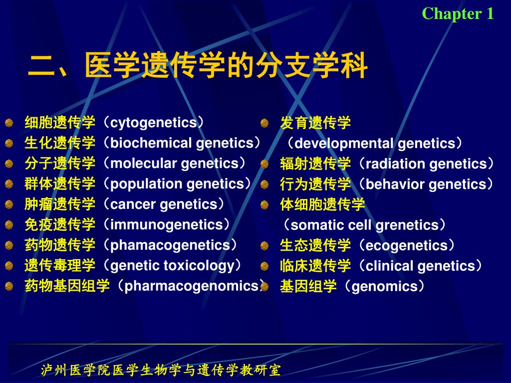 第一节 医学遗传学及其研究范围 泸州医学院医学生物学与遗传学教研室