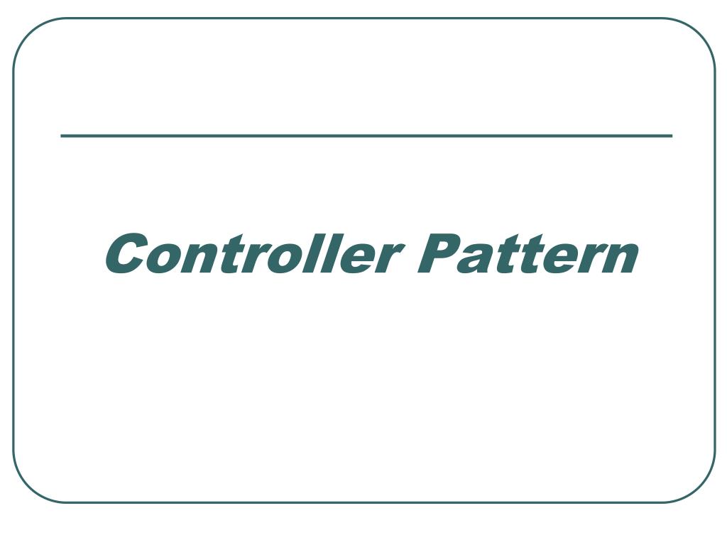 Controller Pattern What first object beyond the UI layer receives and coordinates (“controls”) a system operation message? • Solution: Assign the responsibility to a class that represents one of the following options: