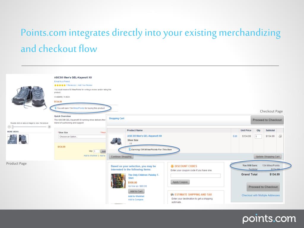 Points.com integrates directly into your existing merchandizing and checkout flow Checkout Page Product Page