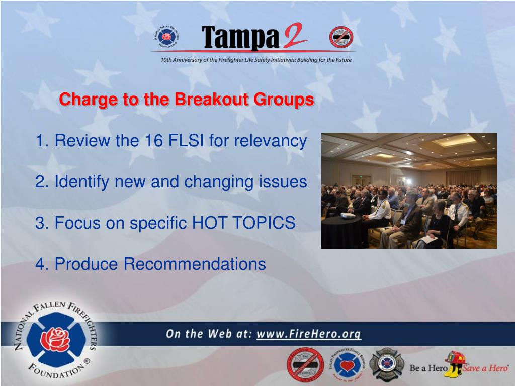 2nd National Firefighter Life Safety Summit (aka TAMPA2) • To note a milestone in fire service history • To revisit what was produced in 2004 • To renew the mission • To inspire the next generation of leaders