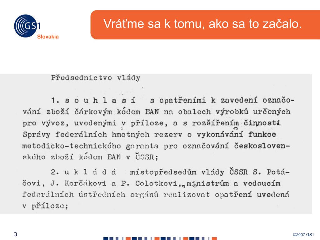 Slovakia. Čo môže ponúknuť GS1 Slovakia?. Bratislava 20.09.2007 Miroslav Štaffen, riaditeľ GS1 Slovakia. Vráťme sa k tomu, ako sa to začalo. Vráťme sa k tomu, ako sa to začalo. .... a pokračovalo v r. 1992. .... a pokračovalo v r. 199 3. ČESKO 480 firiem používa EAN