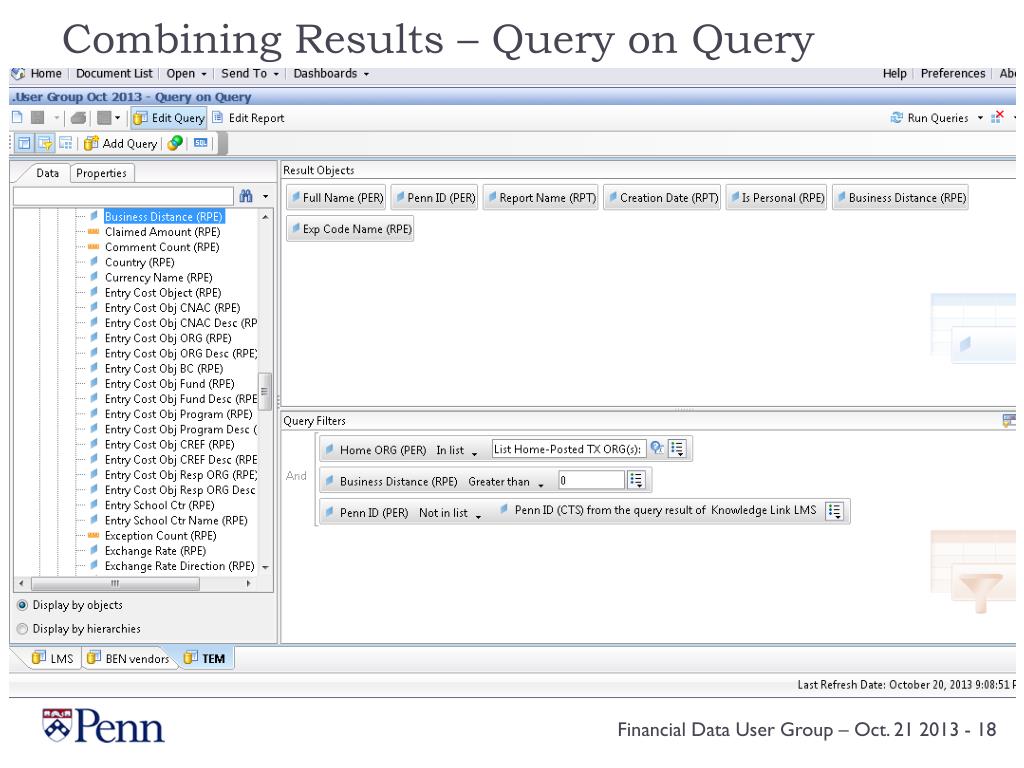 Financial Data User Group Meeting. Terrace Room, Claudia Cohen Hall – October 21, 2013. Agenda. In the works: BRIM changes Refresher on Penn/Works Payroll distributions and encumbrances timing Introducing: Travel & Expense Management (TEM) data Tips & Tricks:
