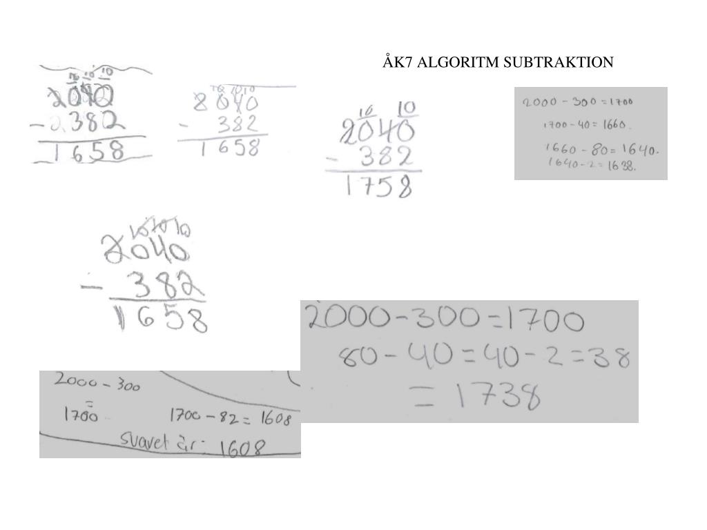 Åk 3 subtraktion Ett antal scannade elevexempel
