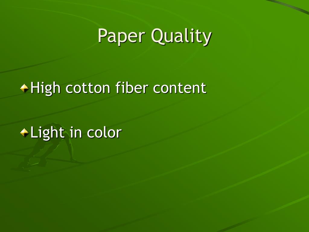 Paper Quality • High cotton fiber content • Light in color