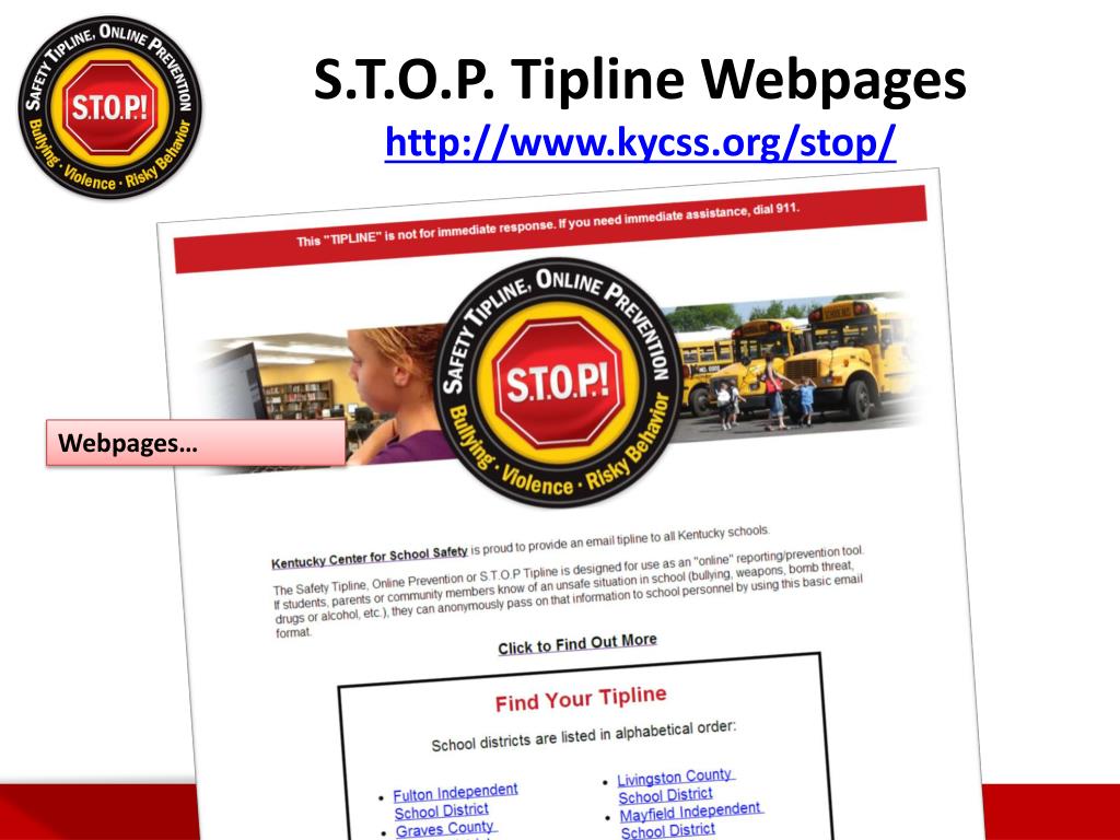 S.T.O.P. Tipline Webpageshttp://www.kycss.org/stop/ Webpages…