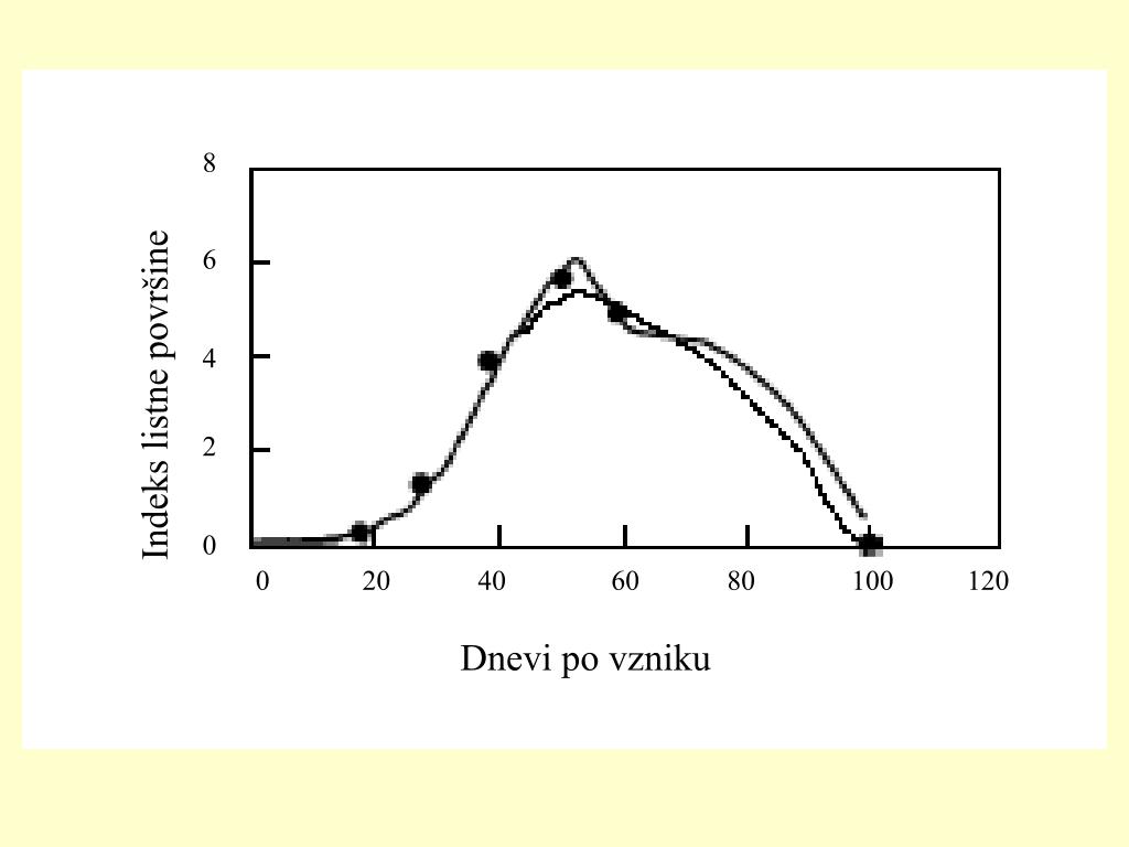 Indeks listne površine 8 6 4 2 0 0 20 40 60 80 100 120 Dnevi po vzniku