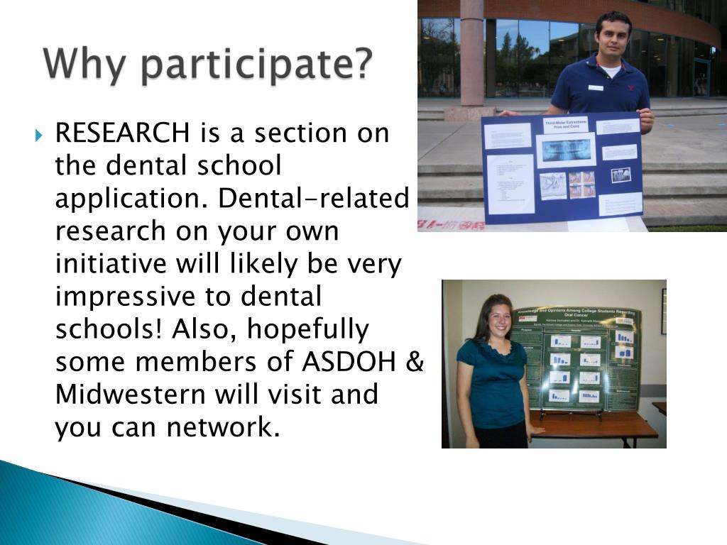 RESEARCH is a section on the dental school application. Dental-related research on your own initiative will likely be very impressive to dental schools! Also, hopefully some members of ASDOH & Midwestern will visit and you can network.