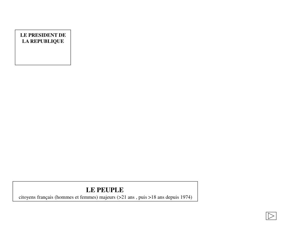 LE PRESIDENT DE LA REPUBLIQUE LE PEUPLE citoyens français (hommes et femmes) majeurs (>21 ans , puis >18 ans depuis 1974)