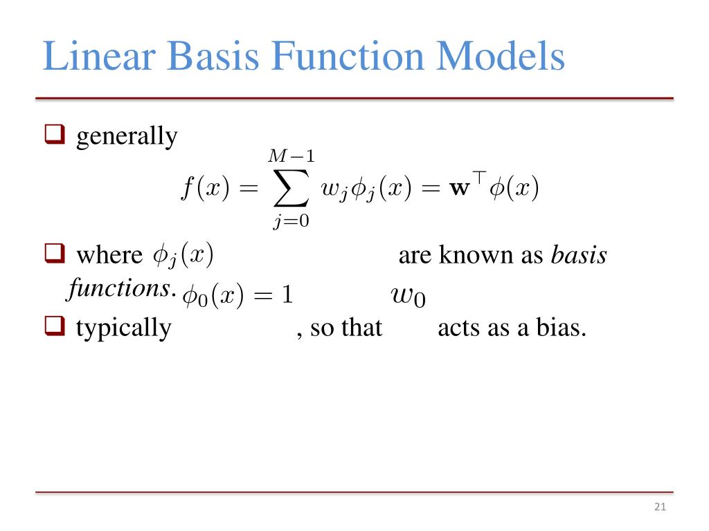 Linear Basis Function Models • generally • where are known as basis functions. • typically , so that acts as a bias.