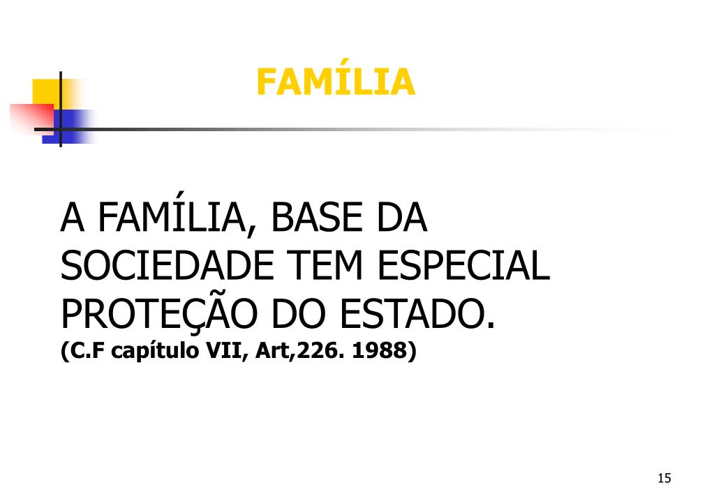 FAMÍLIA A FAMÍLIA, BASE DA SOCIEDADE TEM ESPECIAL PROTEÇÃO DO ESTADO. (C.F capítulo VII, Art,226. 1988)