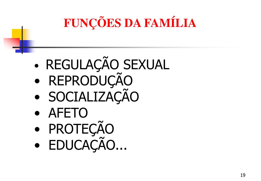 FUNÇÕES DA FAMÍLIA • REGULAÇÃO SEXUAL • REPRODUÇÃO • SOCIALIZAÇÃO • AFETO • PROTEÇÃO • EDUCAÇÃO...
