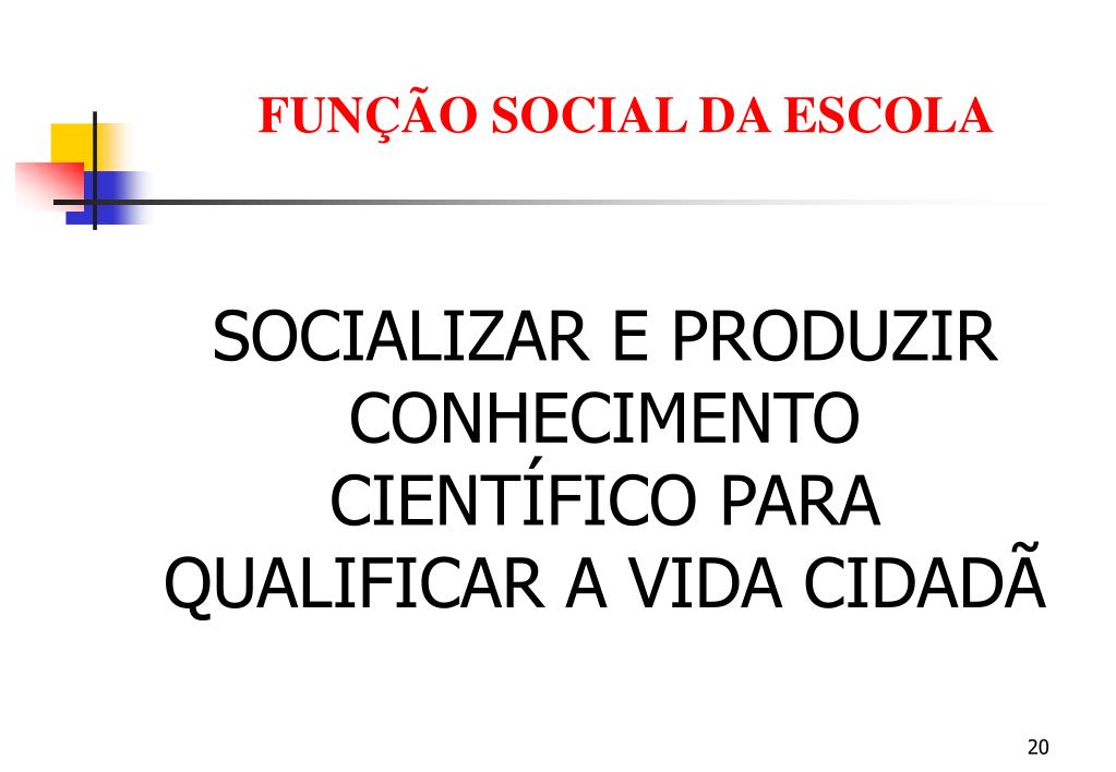 FUNÇÃO SOCIAL DA ESCOLA SOCIALIZAR E PRODUZIR CONHECIMENTO CIENTÍFICO PARA QUALIFICAR A VIDA CIDADÃ