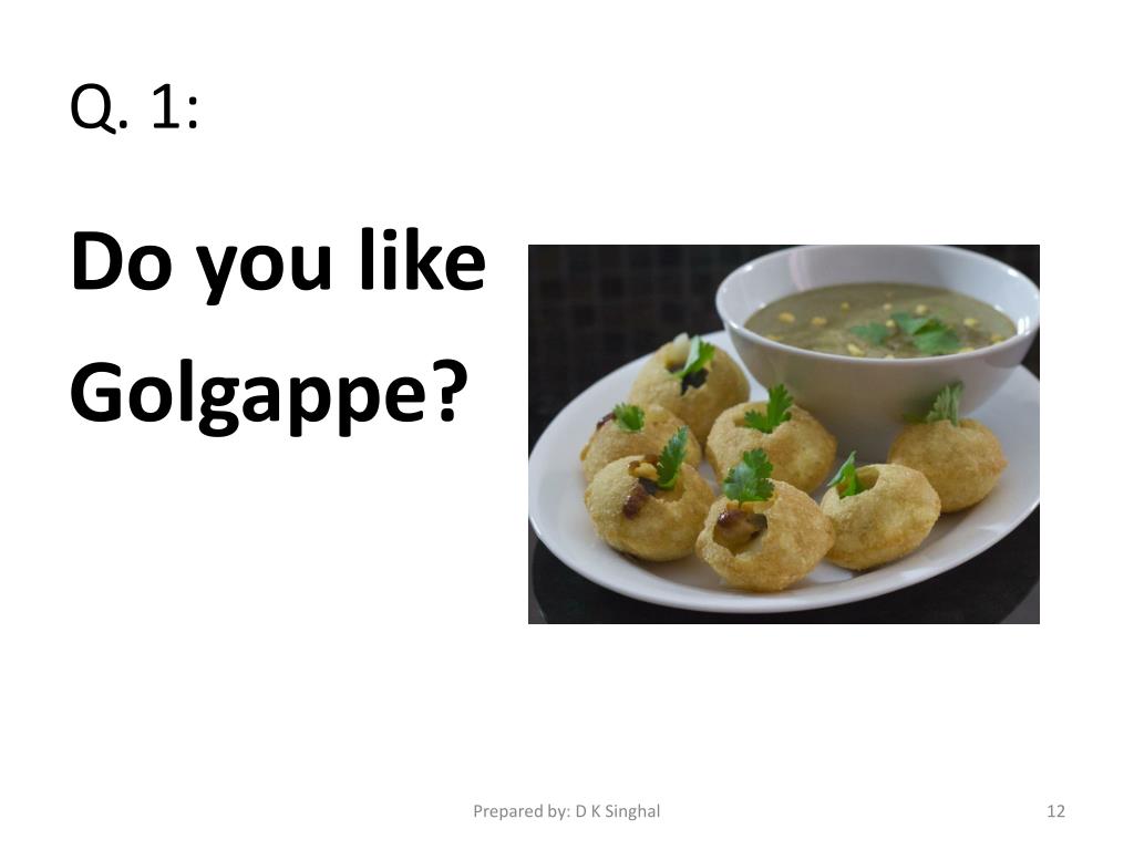 Q. 1: Do you like Golgappe? Prepared by: D K Singhal