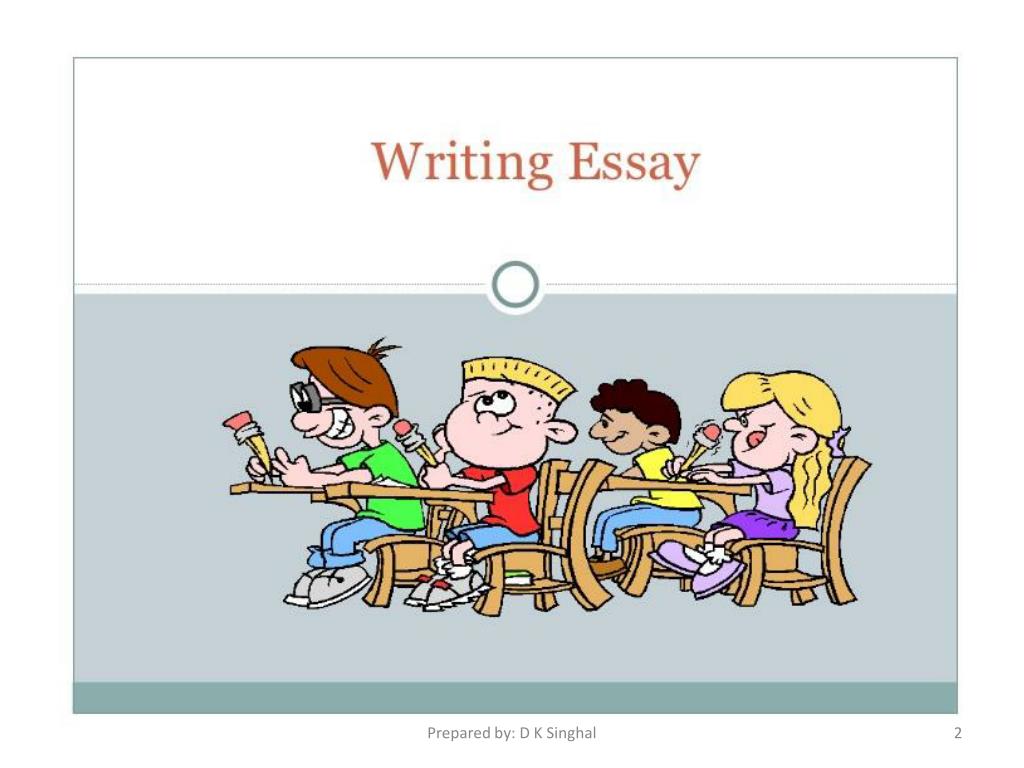 Why to Write an Essay? • You want to convince someone regarding your point of view regarding an issue. • You want to present multiple ideas/issues that wouldn’t fit into a single paragraph situation. • You want to sound intelligent and organized. • Finally, you want to get good marks in your school, college or university! Prepared by: D K Singhal