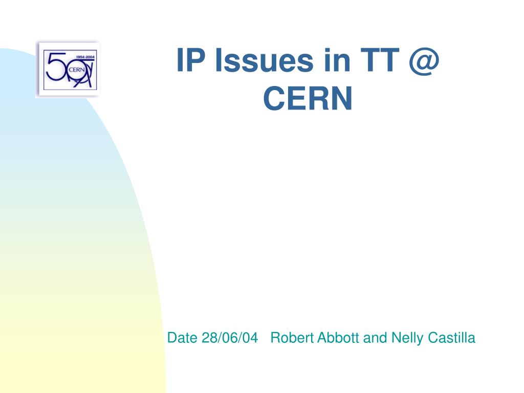 IP Issues in TT @ CERN Date 28/06/04 Robert Abbott and Nelly Castilla