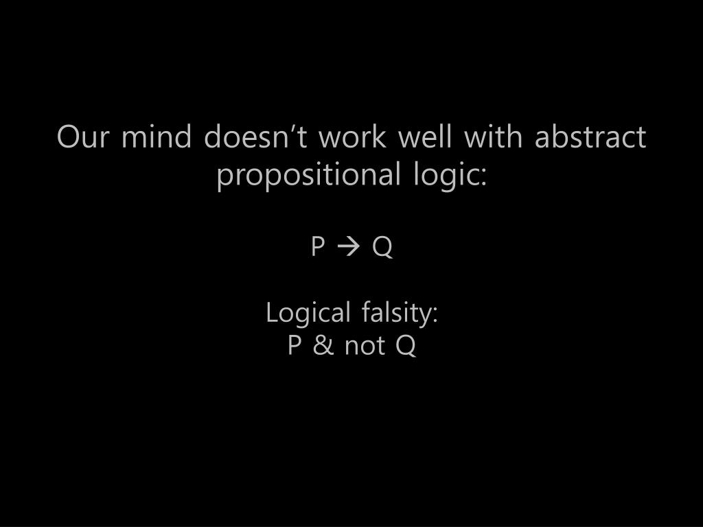 Our mind doesn’t work well with abstract propositional logic:P QLogical falsity:P & not Q