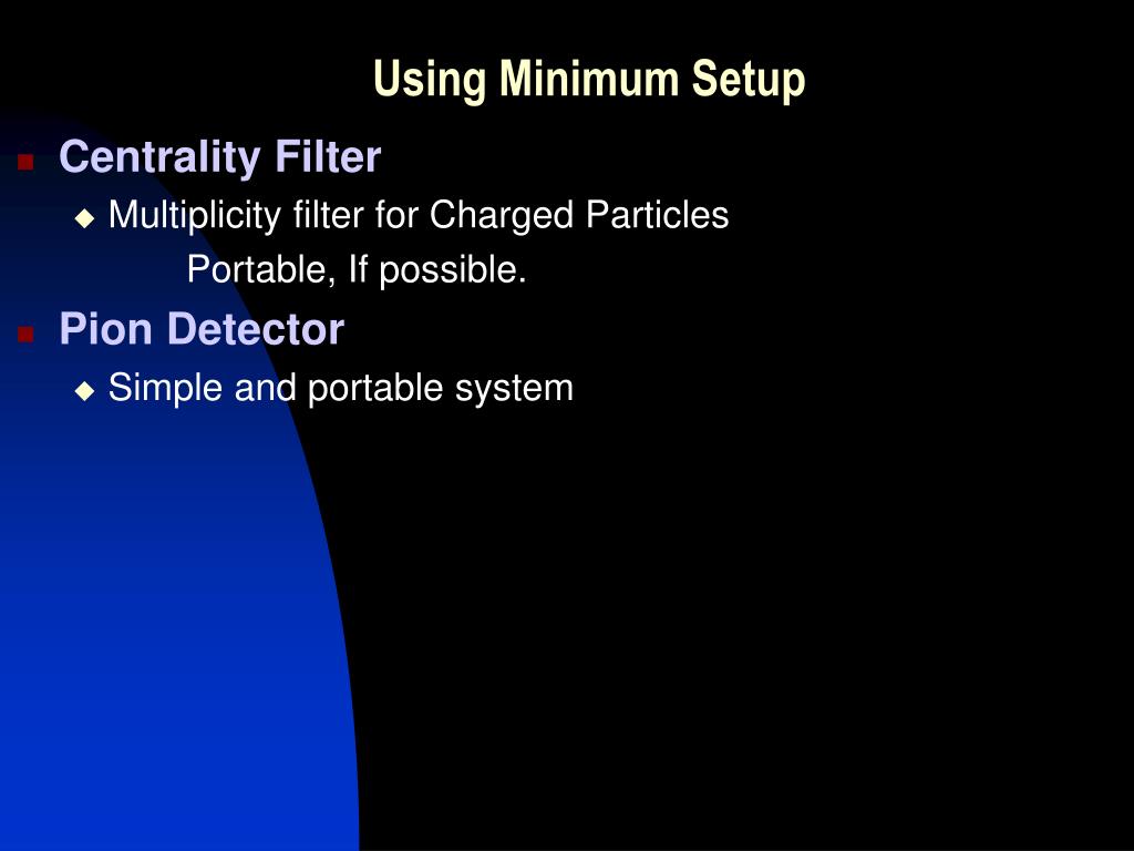 Using Minimum Setup • Centrality Filter • Multiplicity filter for Charged Particles Portable, If possible. • Pion Detector • Simple and portable system HIMAC