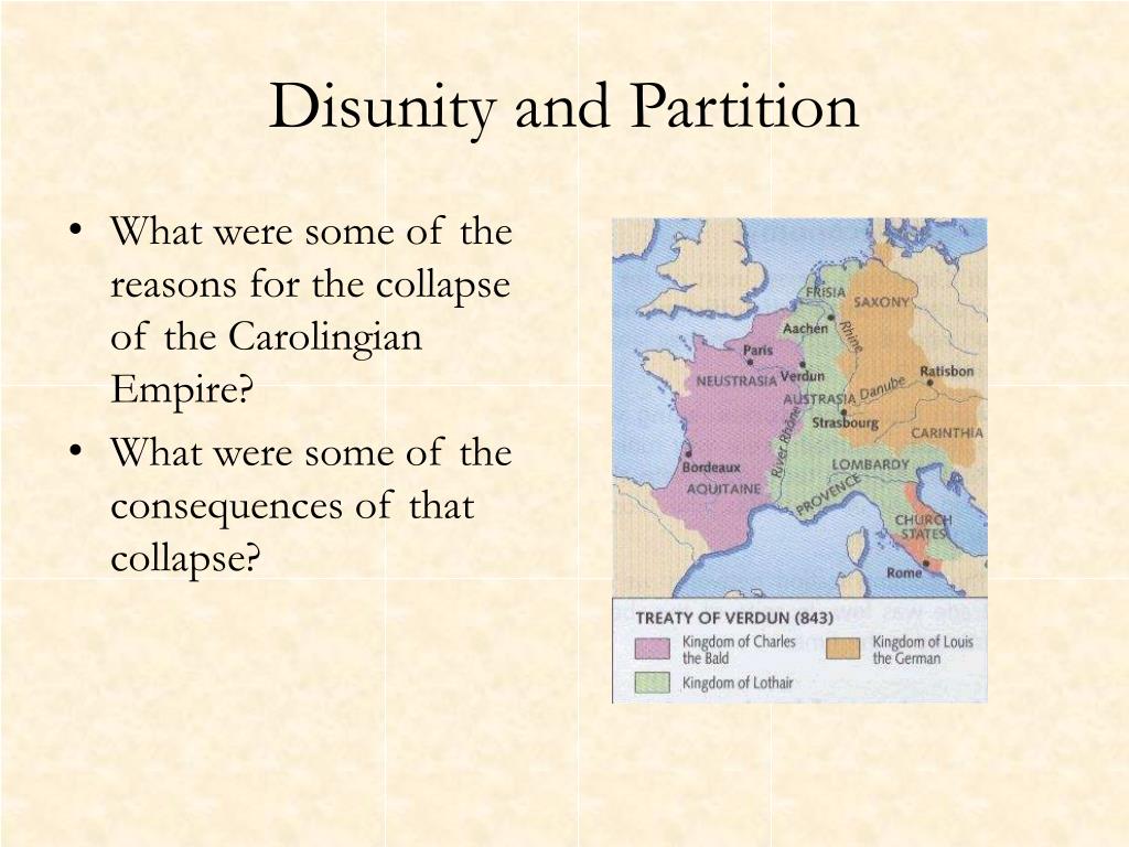 Disunity and Partition • What were some of the reasons for the collapse of the Carolingian Empire? • What were some of the consequences of that collapse?