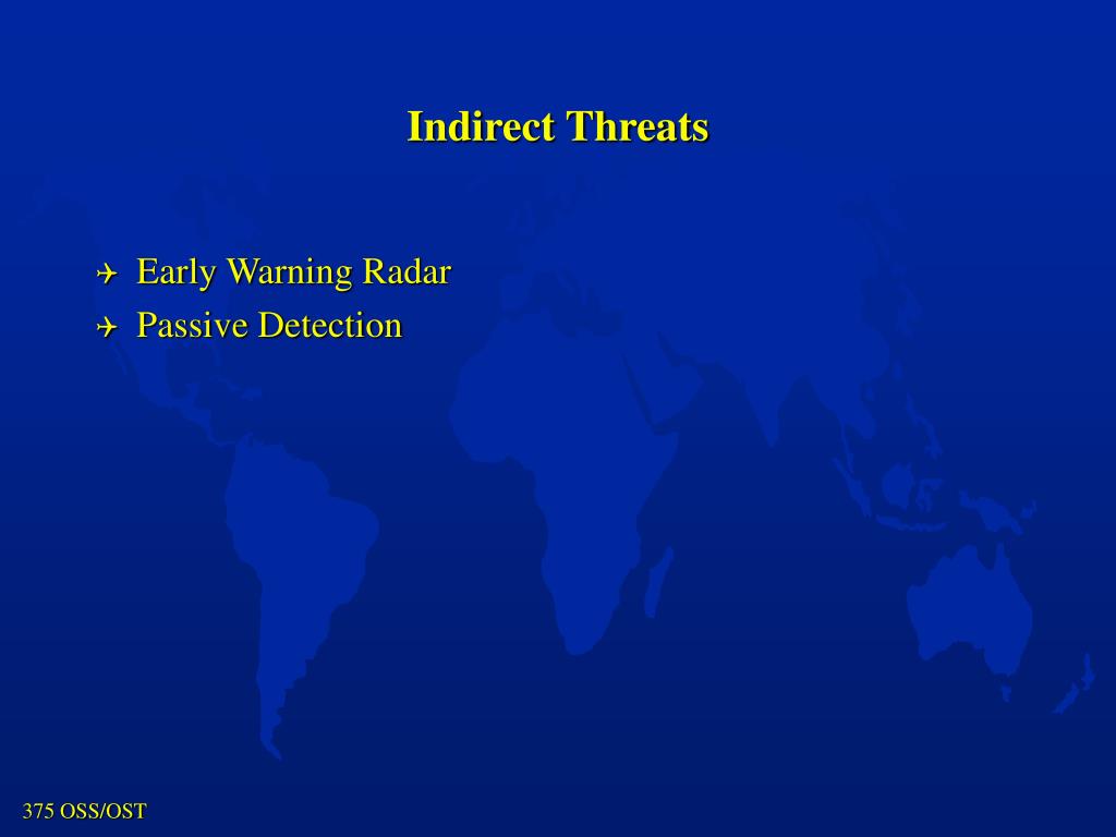 Early Warning Radar • These systems detect, track, and identify friendly and/or hostile aircraft. • What can we do? • Be aware with up-to-date Intel • Avoid the threat • Terrain mask if necessary