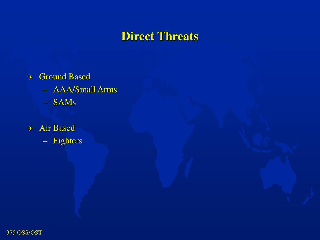 Direct Threats • Ground Based • AAA/Small Arms • SAMs • Air Based • Fighters