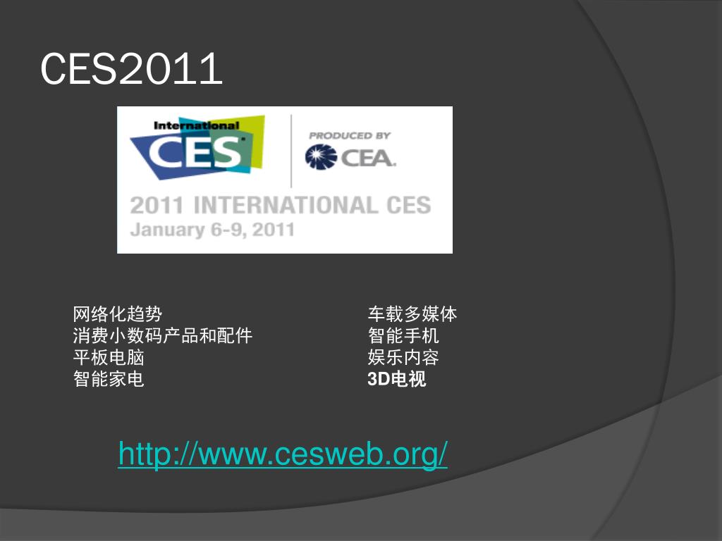Qin LIU. Weekly news. Dec 30th. CES2011 Samsung Galaxy S Kinect 2011 年九个品牌的平板传言 总汇 LBS. CES2011. http://www.cesweb.org/. Samsung Galaxy S 千万目标即将达成.