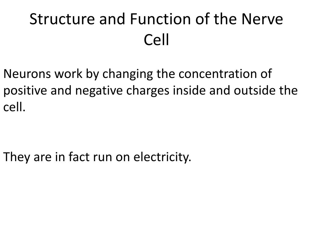 Structure and Function of the Nerve Cell Neurons work by changing the concentration of positive and negative charges inside and outside the cell. They are in fact run on electricity.