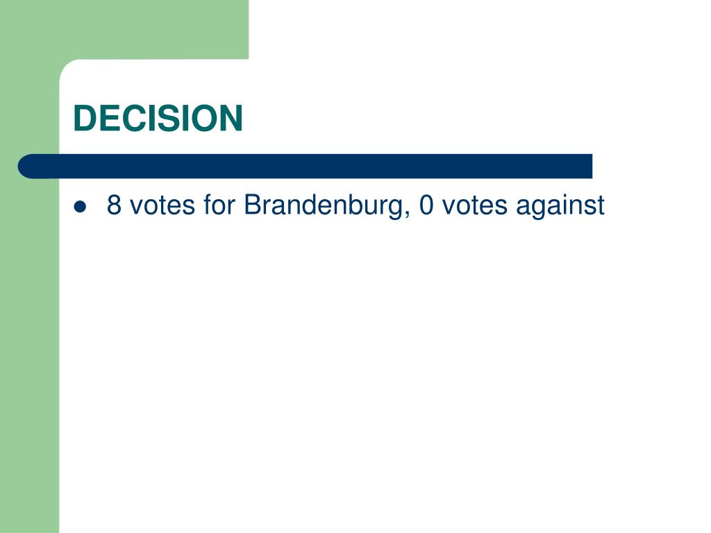DECISION • 8 votes for Brandenburg, 0 votes against