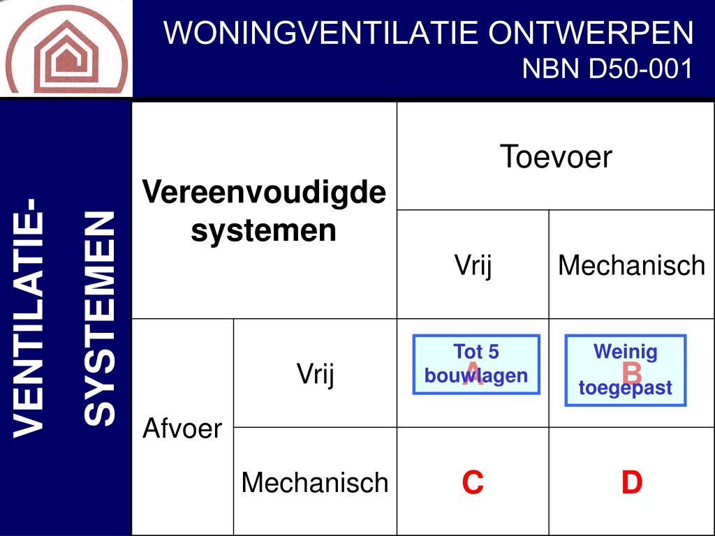WONINGVENTILATIE ONTWERPEN NBN D50-001 VENTILATIE- SYSTEMEN Tot 5 bouwlagen Weinig toegepast