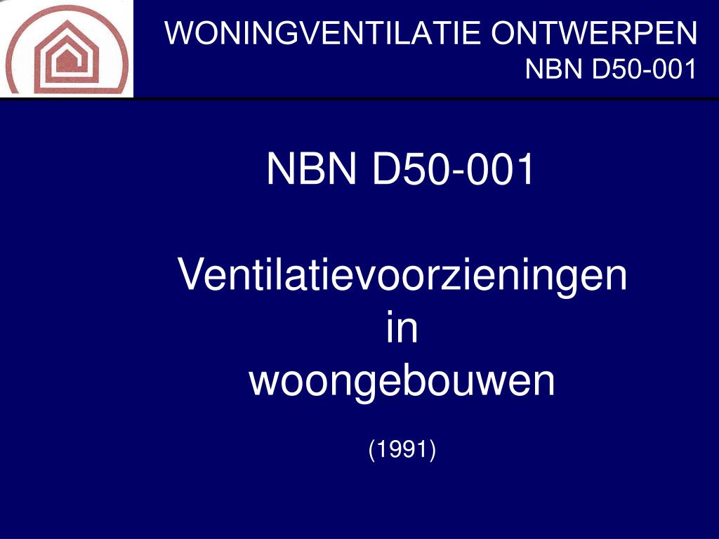WONINGVENTILATIE ONTWERPEN. door de heer Bernard Wallyn, ir. Technische studiedienst. WONINGVENTILATIE ONTWERPEN NBN D50-001. NBN D50-001 Ventilatievoorzieningen in woongebouwen (1991). WONINGVENTILATIE ONTWERPEN NBN D50-001. Basisprincipes Ventilatiedebieten Systemen RTO, DO, RAO