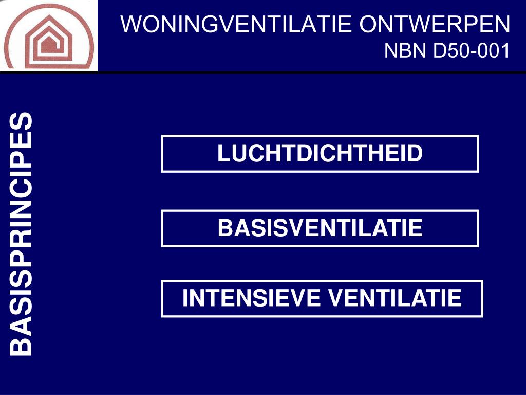 WONINGVENTILATIE ONTWERPEN • NBN D50-001 LUCHTDICHTHEID BASISPRINCIPES BASISVENTILATIE INTENSIEVE VENTILATIE