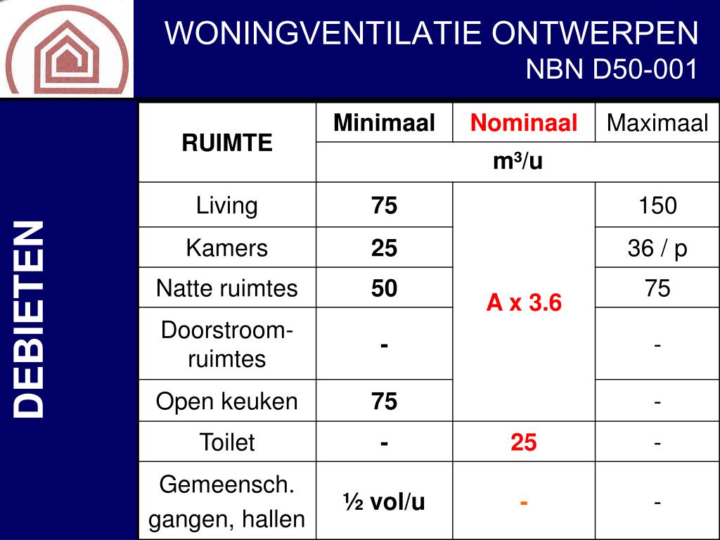 WONINGVENTILATIE ONTWERPEN NBN D50-001 DEBIETEN