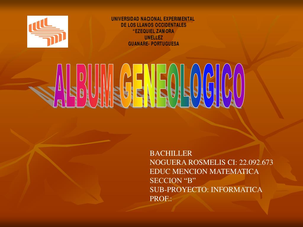ALBUM GENEOLOGICO BACHILLER NOGUERA ROSMELIS CI: 22.092.673 EDUC MENCION MATEMATICA SECCION “B” SUB-PROYECTO: INFORMATICA PROF.: