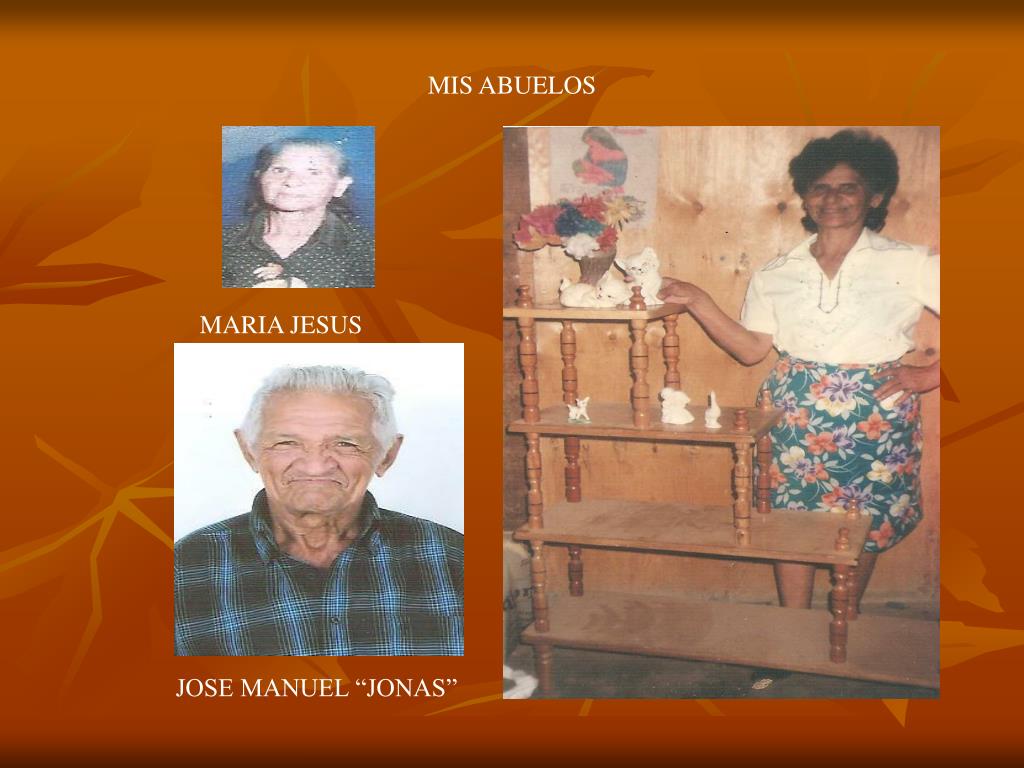 ALBUM GENEOLOGICO. BACHILLER NOGUERA ROSMELIS CI: 22.092.673 EDUC MENCION MATEMATICA SECCION “B” SUB-PROYECTO: INFORMATICA PROF.:. MIS ABUELOS. MARIA JESUS. JOSE MANUEL “JONAS”. MIS PADRES. ROSA. JOSE LUIS. MIS TIOS MATERNOS. REINALDO. ZORAIDA. MIGUEL. RAFAEL. ALBERTO. GUSTAVO.