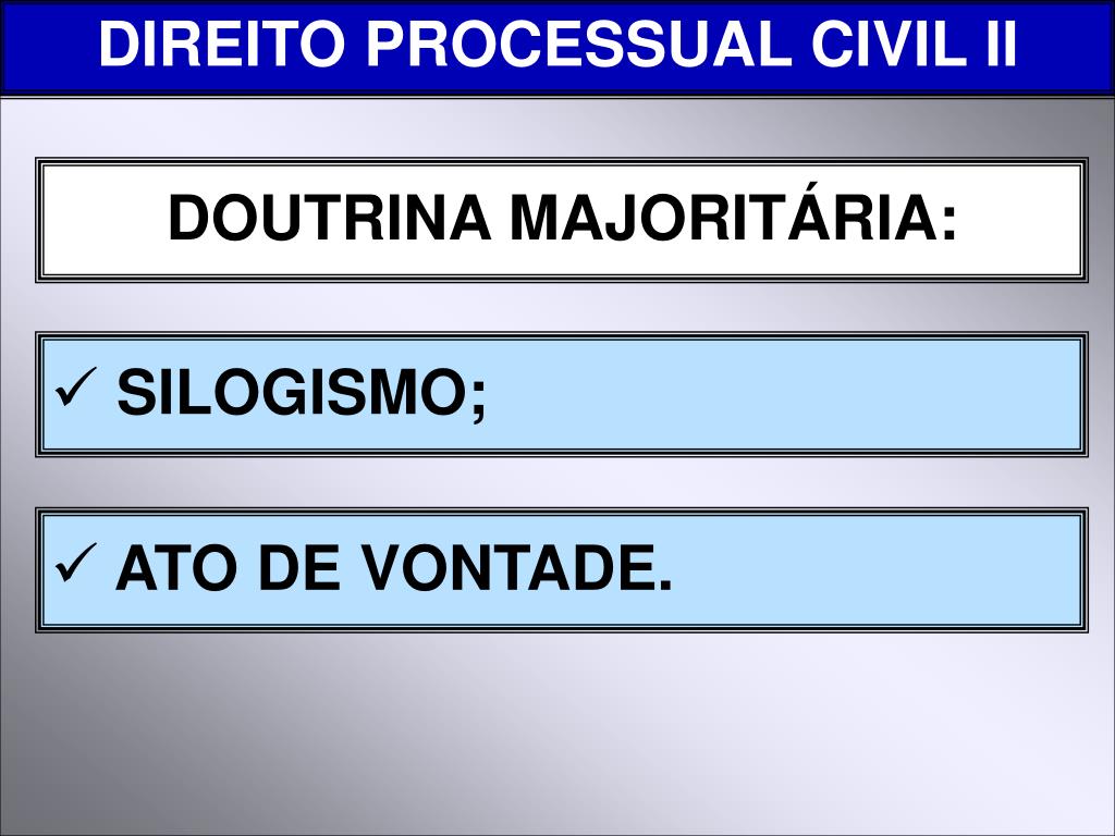 DIREITO PROCESSUAL CIVIL II DOUTRINA MAJORITÁRIA: • SILOGISMO; • ATO DE VONTADE.