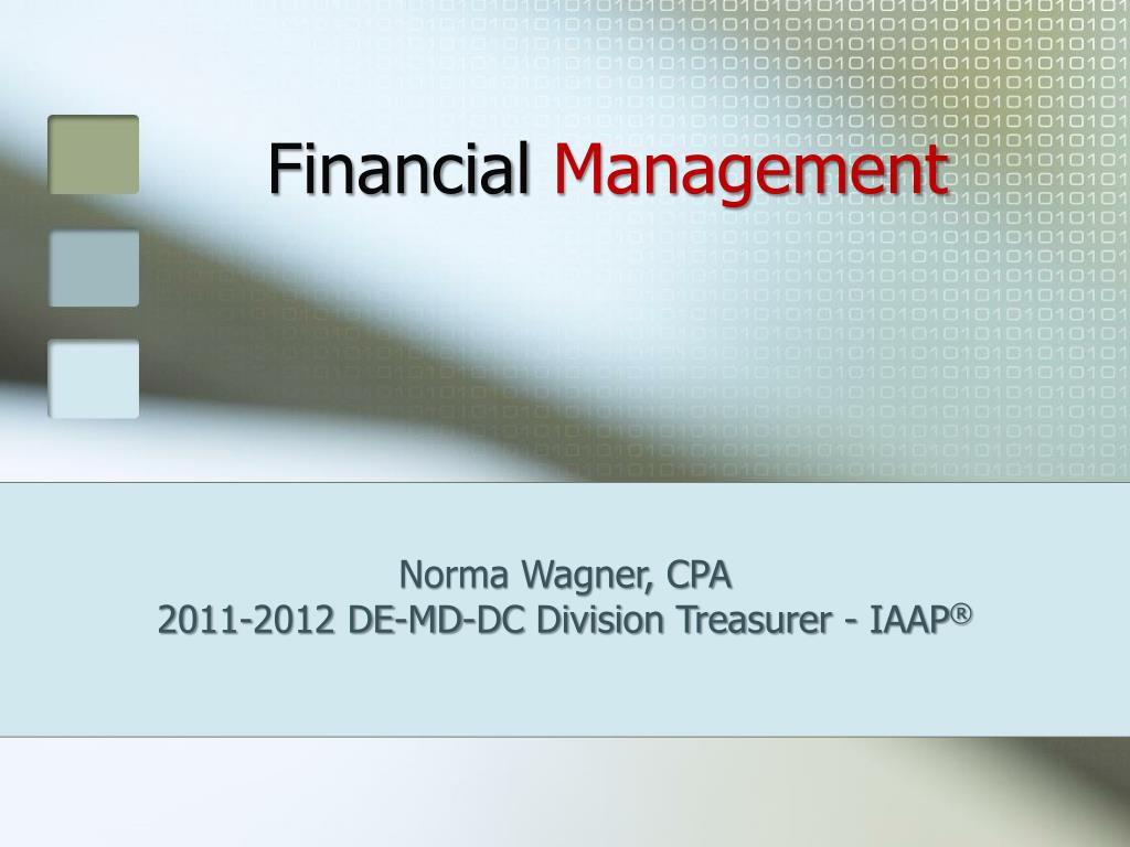 Financial Management Norma Wagner, CPA 2011-2012 DE-MD-DC Division Treasurer - IAAP®