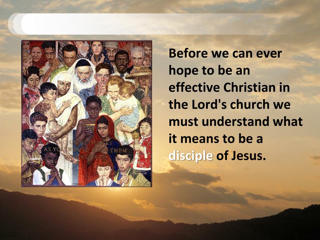 Before we can ever hope to be an effective Christian in the Lord's church we must understand what it means to be a disciple of Jesus. . 24 Then Jesus said to his disciples, “If any of you wants to be my follower, you must turn from your selfish ways, take up your cross, and follow me.