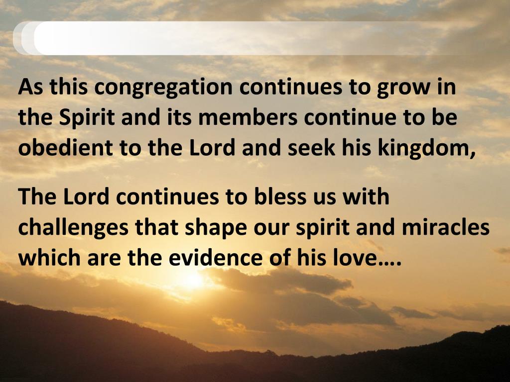 As this congregation continues to grow in the Spirit and its members continue to be obedient to the Lord and seek his kingdom, The Lord continues to bless us with challenges that shape our spirit and miracles which are the evidence of his love….