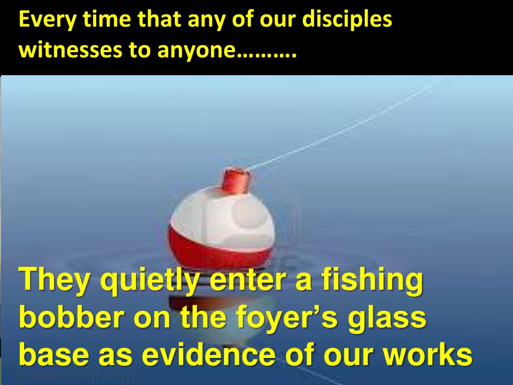 Every time that any of our disciples witnesses to anyone………. They quietly enter a fishing bobber on the foyer’s glass base as evidence of our works
