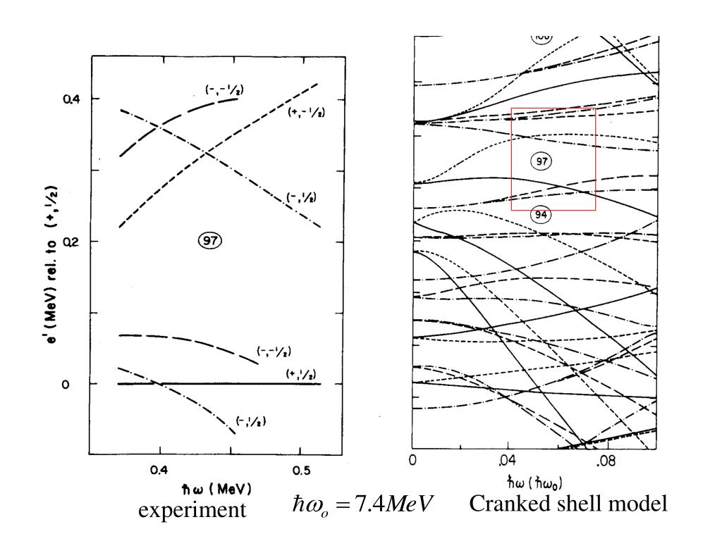 The cranked shell model Many nuclei have a relatively stable shape. Each configuration of particles corresponds to a band.