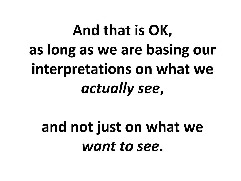 And that is OK, as long as we are basing our interpretations on what we actually see,and not just on what wewant to see.