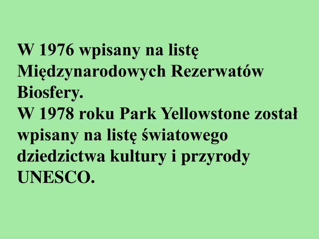 W 1976 wpisany na listę Międzynarodowych Rezerwatów Biosfery. W 1978 roku Park Yellowstone został wpisany na listę światowego dziedzictwa kultury i przyrody UNESCO.