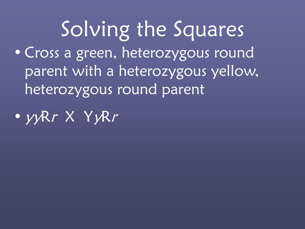 Solving the Squares Cross a green, heterozygous round parent with a heterozygous yellow, heterozygous round parent yyRr X YyRr