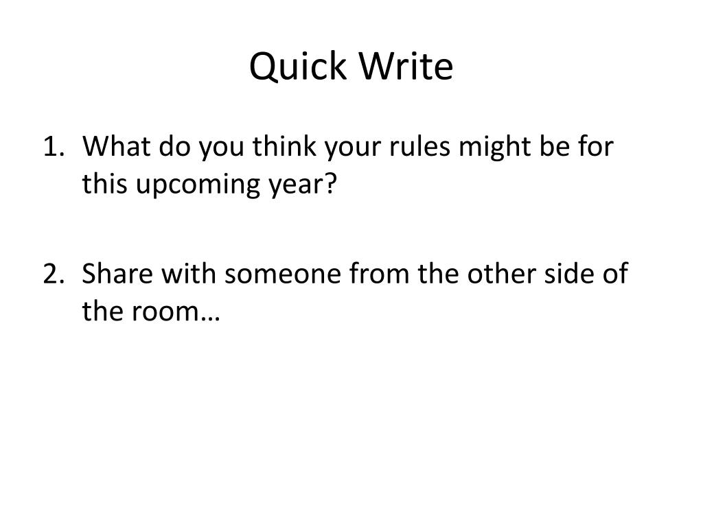 Quick Write • What do you think your rules might be for this upcoming year? • Share with someone from the other side of the room…