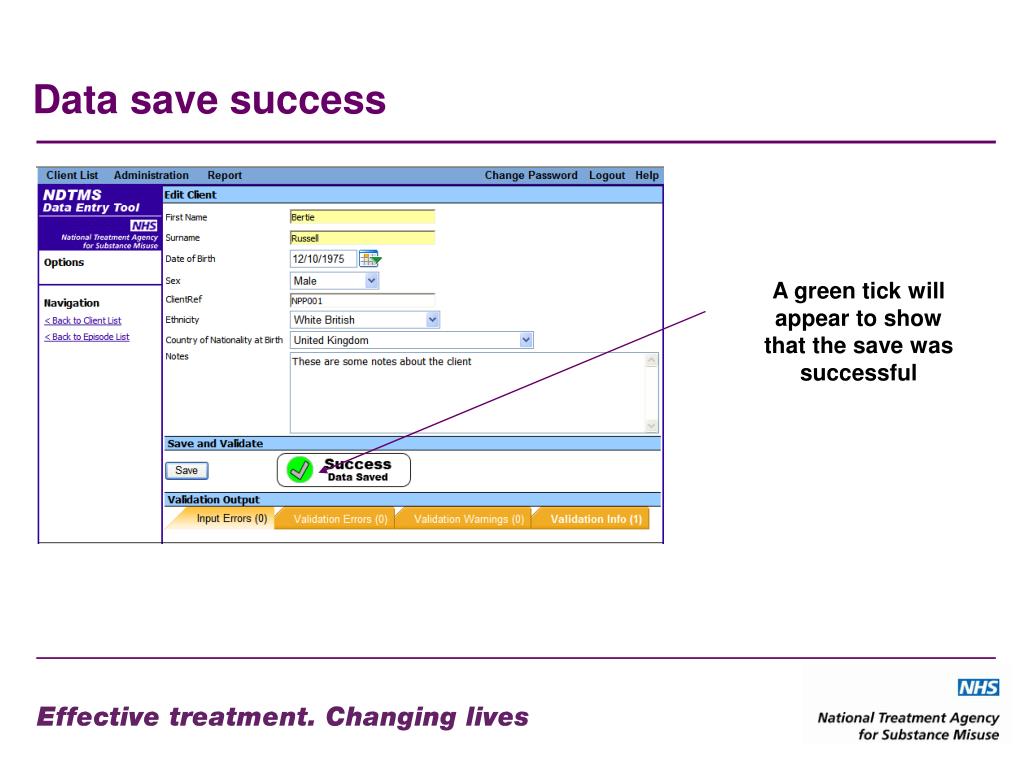Client information The client ref is created by the agency The notes do not get sent to NDTMS Save the page after completion