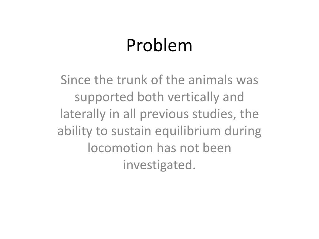 Problem Since the trunk of the animals was supported both vertically and laterally in all previous studies, the ability to sustain equilibrium during locomotion has not been investigated.