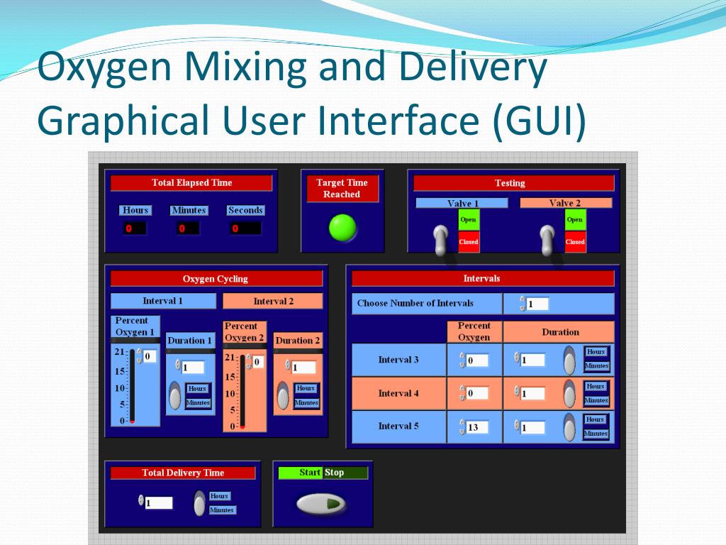 Oxygen Mixing and DeliveryExperimental Set-Up • Oxygen concentration measured by a NeoFox Fiber Optic Oxygen (FOXY) sensor Valves Gas Feed Lines: 0% and 21% Y Connector Output Tube