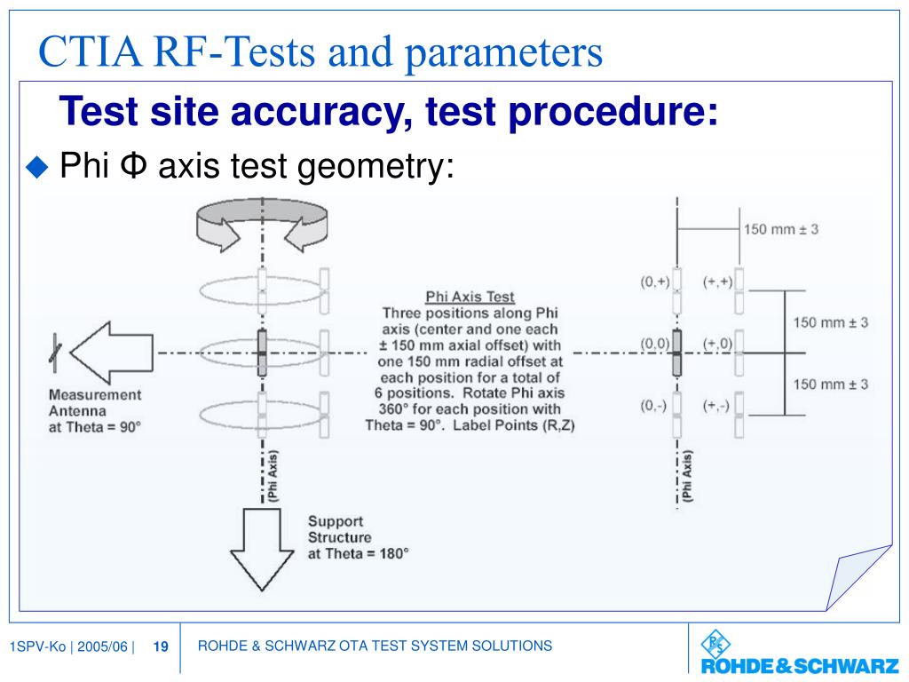 CTIA RF-Tests and parameters Test site accuracy, test procedure: • Allowances and adjustments to Phi Φ axis: