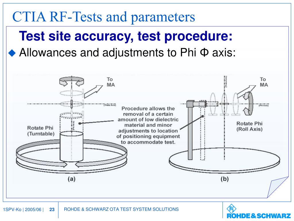 CTIA RF-Tests and parameters Test site accuracy, test procedure: • Allowances and adjustments to Phi Φ axis: • Several exceptions for other measurement points, angular stepping etc.